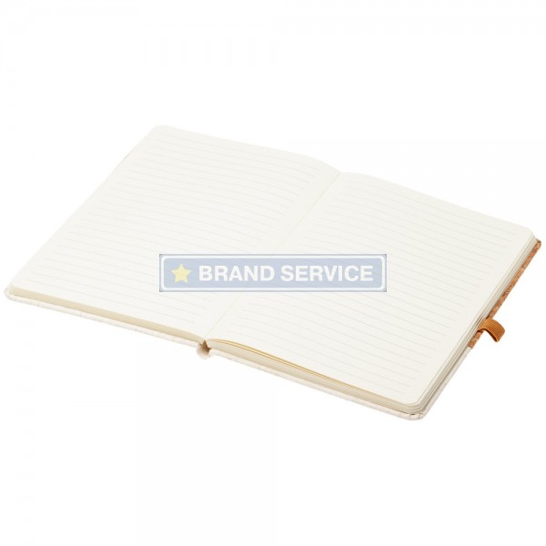 ЕКО блокнот формату А5 з твердою обкладинкою з корку та льону. Є резинка-тримач для ручки. Зручний та практичний подарунок. Велика область для внесення нотаток, ескізів та проектів. Блок - кольору слонової кістки, 192 сторінки в лінійку. Папір сертифікований FSC. Щільність паперу: 70 г/м².